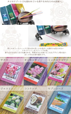 ※検索用※[アジアン & カジュアル マーライ オリエンタル ショップ マーライ Oriental shop MARAI] [アジアン ファッション アジアン雑貨 アジア 衣料 服 エスニック ファッション オリエンタル アジアンテイスト 後払い レディス レディース] 【お香 インセンス(スティック型) チャンダン ローズ バラ ココナッツ バニラ レモングラス サクラ さくら オーキッド 甘い 爽やか フローラル 柑橘 石鹸 カラーお香 おしゃれ 雑貨 エスニック雑貨】 サイズ 長さ お香部分長さ 内容量 燃焼時間 22 cm 16 cm程度 50本前後 約30〜40分前後 原産国/タイ ※インド香の内容量にはバラツキがございます。