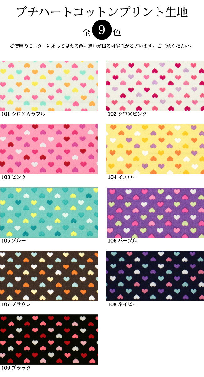 【メール便2mまで】プチハートコットンプリント生地(6114-1)手作り 洋服|女の子 レッスンバッグ 手提げバッグ プリント 布地 綿 ハンドメイド コットン生地 小学校 入学準備 入園グッズ 入園準備 メール便OK